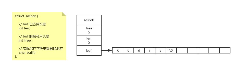 - obj:成员对象:指向字符串对象,它保存着一个SDS