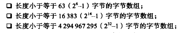字节数组是以下三种长度的其中一种: